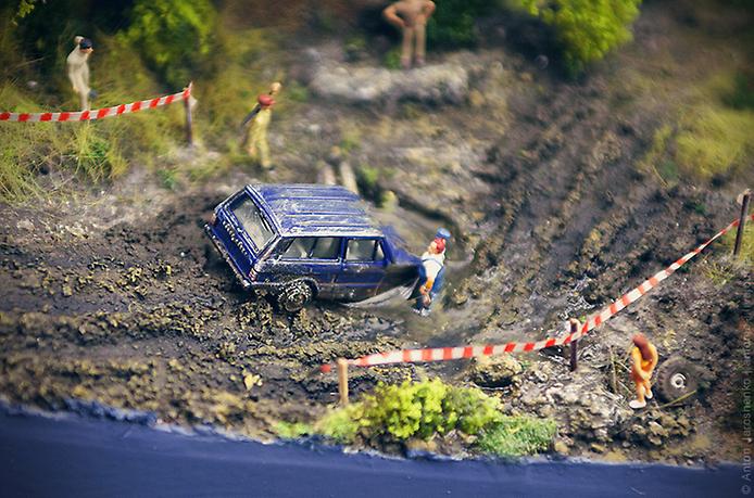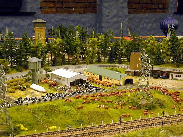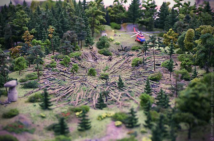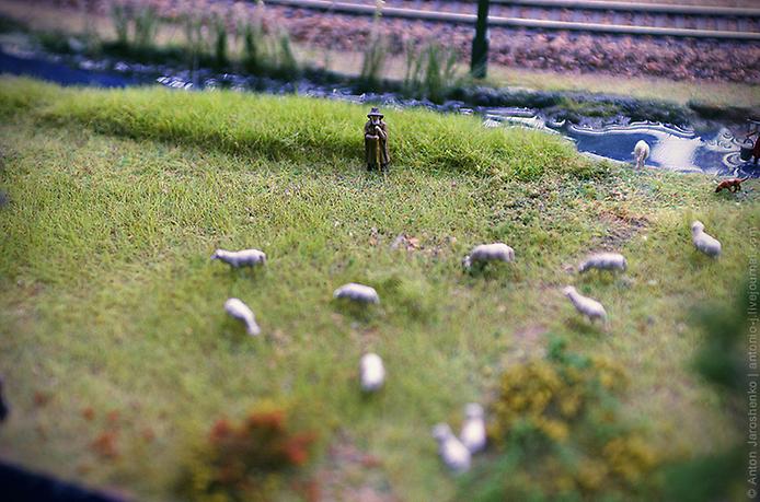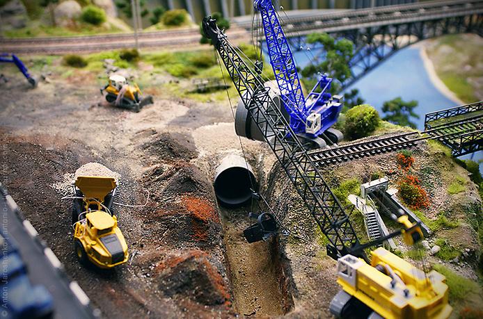 Макет расположен на площади в 800 кв. метров. Он настолько огромен, что не вмещается целиком в кадр. Это одна из его частей: