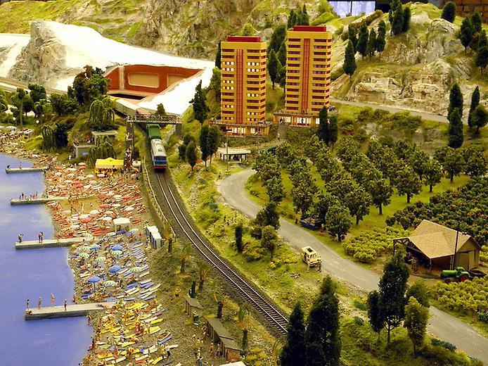 Самое впечатляющее — это то, что все движется и, кажется, что там также как и в реальности идет жизнь, только в уменьшенном размере. Например фонтаны здесь с настоящей водой. Если нажать на кнопку, то фонтан начнет работать. Множество таких кнопочек расположены по всему макету. Самое увлекательное — нажать, и искать глазами, что же начало работать.