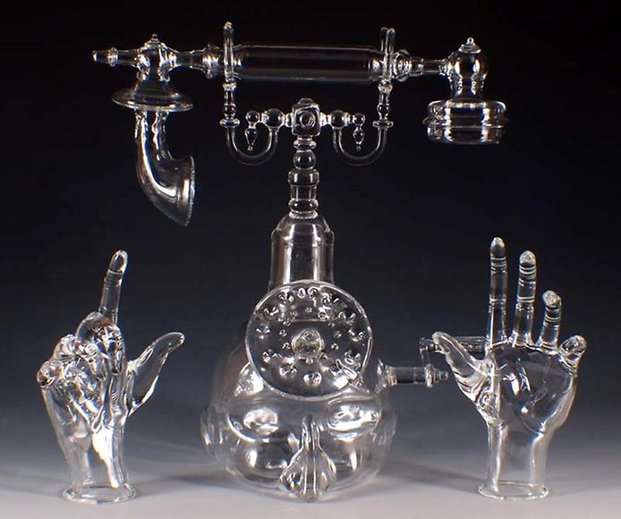 Просматривая работы этого художника, трудно себе представить, как это все делается. Тонкие аккуратные зонтики, винтажные телефоны, охотничье оружие, различные бюсты- все это сделано из стекла и не имеет аналогов во всем мире.