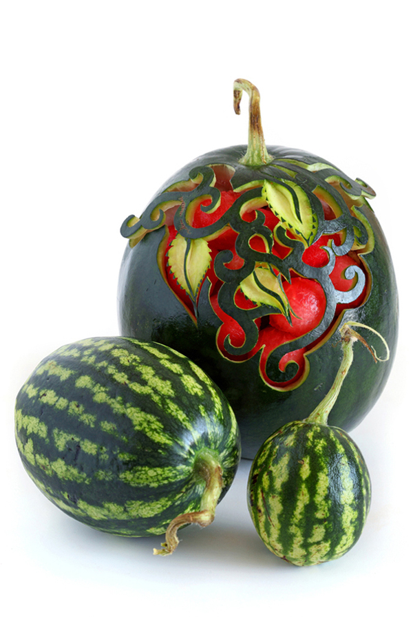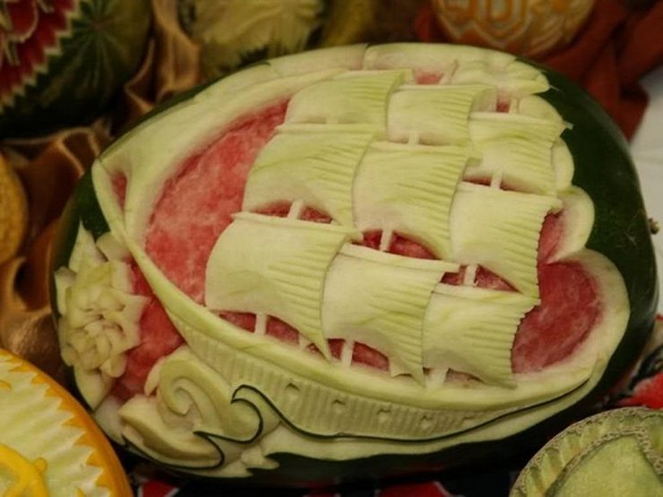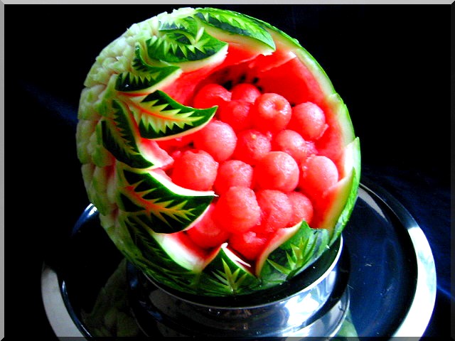 Карвинг, как искуссная резьба по овощам и фруктам, появился много лет тому назад на Востоке, и в течение тысячелетий стал там неотъемлемой частью национальных традиций и культуры. Мастера этого дела передавали свои знания по наследству из поколения в поколение. В СССР овощной карвинг культивировался довольно слабо из-за скудного ассортимента овощей и фруктов. Ну а эта статья посвящена резке по арбузу.