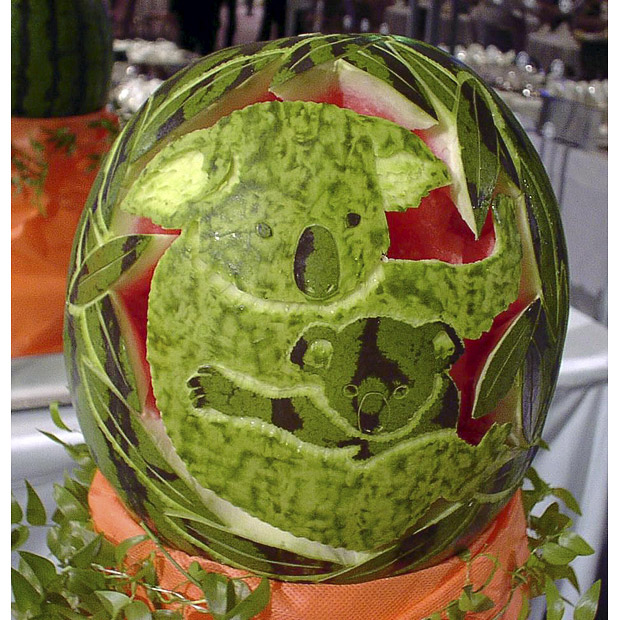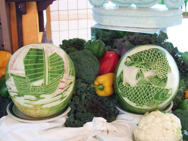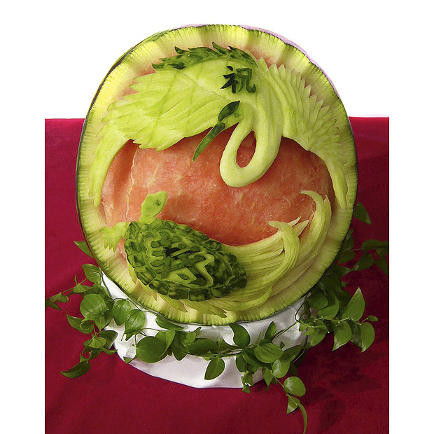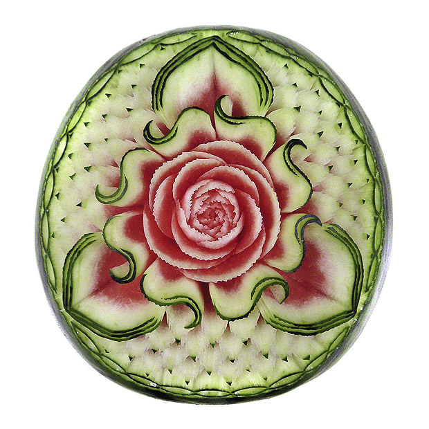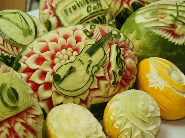 Красиво украшенное блюдо — очень важный элемент современного повседневного и праздничного стола. Украшения заставляют по другому взглянуть даже на привычные блюда, вызывая радость у детей и взрослых. И фигурная резьба по овощам и фруктам может в этом деле очень хорошо помочь. Карвинг — это довольно молодая "забава", которая порождает настоящие шедевры искусста — съедобные и поэтому крайне недолговечные. Живет это искусство после съедения только на фото и на видео, но от этого не является менее красивым и значимым. Предлагаю ими полюбоваться: