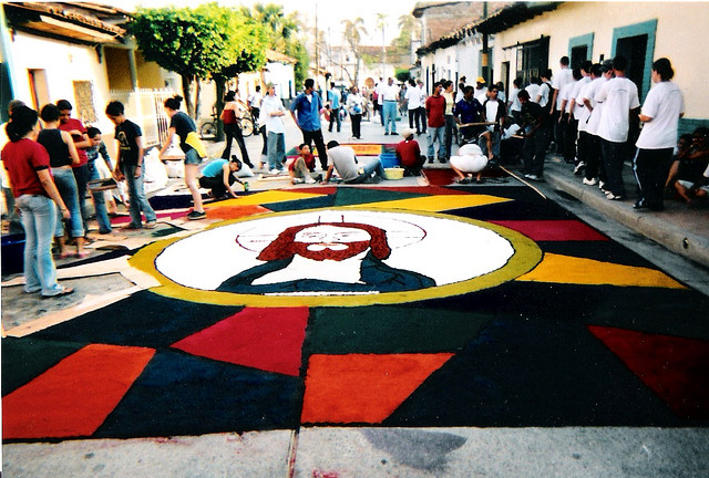 Между вербным воскресеньем и Пасхой, тихие деревушки, согласно давним традициям, оживают и принимаются за увлекательное рукоделие. Местные жители занимаются созданием уличных ковров, которые производятся из цветных опилок, и других природных материалов.