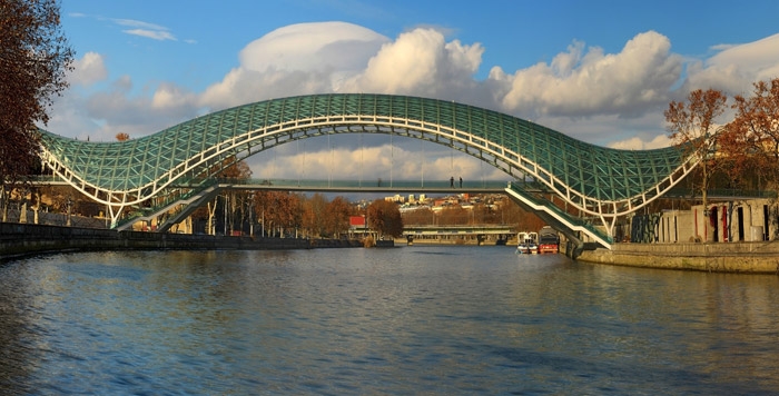 Как Вы уже заметили, большинство достопримечательностей Грузии находится именно в Тбилиси. Пешеходный Мост мира был создан итальянским архитектором Мишелем де Лукки. Одна из особенностей моста – крыша в форме лука. С моста открывается потрясающий вид на древние стены крепостей, церкви, и другие исторические сооружения.