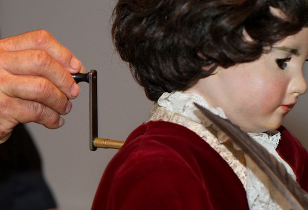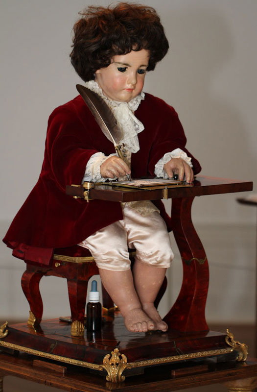 Кроме того, проработаны и доведены до совершенства не только внутренние детали, а и внешний вид Писателя. Весь механизм скрыт в маленьком игрушечном мальчике.