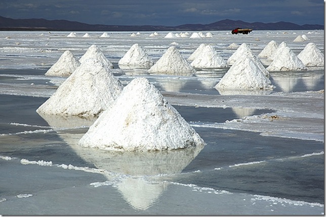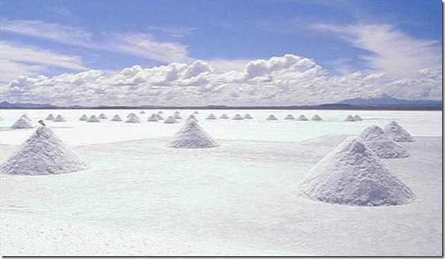 Озеро Уюни – практически высохшее соленое озеро, которое находится в окрестностях города Уюни. Самыми главными минеральными ресурсами, которыми оно располагает являются минералы галит и гипс. Уюни само по себе представляет один большой сгусток соли, устилающей всё его дно на глубину до 8 метров. В сезон дождей в Боливии озеро наполняется небольшим количеством воды и при этом формирует самое большое в мире зеркало. С экономической точки зрения этот солончак представляет очень большое значение для Боливии, в виду его колоссальных запасов соли, добыча которой ведется и по сей день. Всего здесь насчитывается около 10 млрд тонн соли