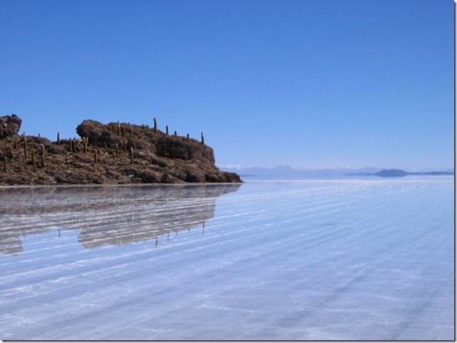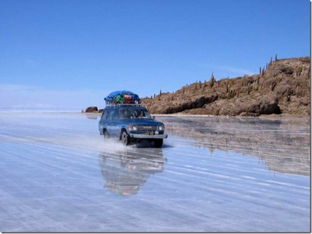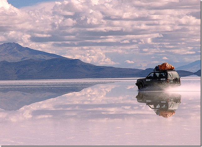 Иногда, путешествуя в самом забытом и покинутом месте планеты, там, где не должны жить люди, в пустыне, находящейся на высоте почти 4000 метров, можно наткнуться на поистине незабываемое зрелище. Только представьте себе — огромное, твердое озеро Уюни, площадью более 10000 квадратных километров, поверхность которого полностью зеркальная и практически абсолютно ровная. Очутившись в таком месте вполне можно почувствовать себя на другой планете