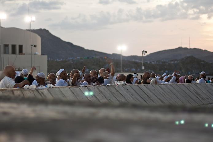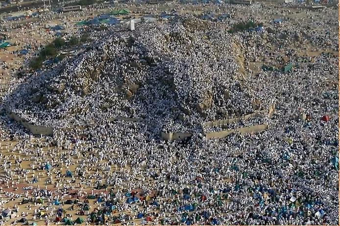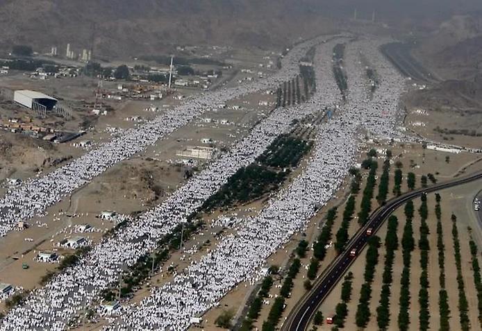 9 зуль-хиджжа. Паломники отправляются к горе Арафат, где объединяют молитвы аср и зухр. До заката солнца люди молятся здесь ради прощения грехов.