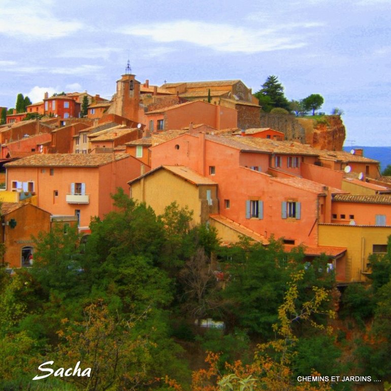 Залежи охры обеспечивают естественный красновато-коричневый оттенок всей деревне. Фасады зданий выглядят просто великолепно, оттенки переливаются от тонкого светло-желтого до темно-красного, которым выделяют оконные ставни и двери, ярко окрашивая их. Эти красные, желтые и коричневые оттенки зданий формируют поразительный контраст с пышными зелеными соснами близлежащих лесов. Расположенный у подножия гор регион считается одной из самых красивых сельских местностей во Франции.