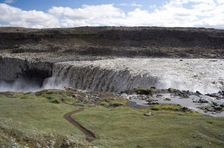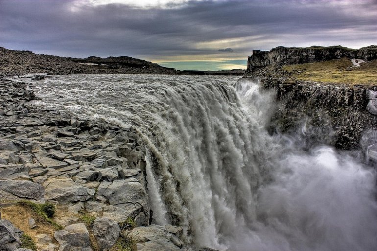 Водопад Деттифосс находится в Национальном парке Ватнаёкюдль в Северо-восточной Исландии и считается самым мощным водопадом в Европе. Это также самый большой водопад в Европе с точки зрения объема воды, имея средний поток в 193 кубических метров в секунду. Его объем часто увеличивается, особенно когда погода или вулканическая активность влияют на таяние одноименного ледника. Водопад так мощен, что он заставляет окружающие породы вибрировать, что легко ощущается, когда стоишь рядом.