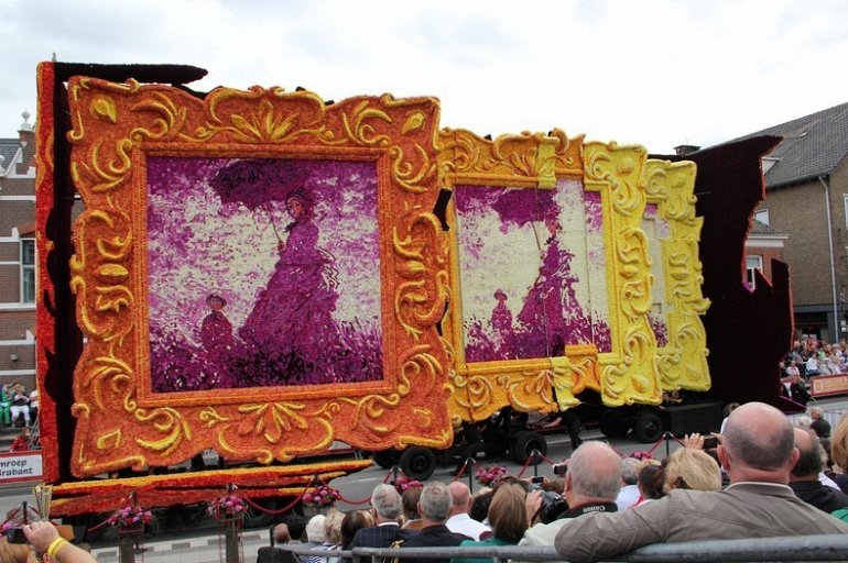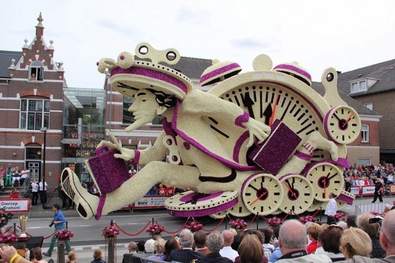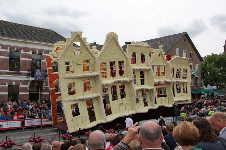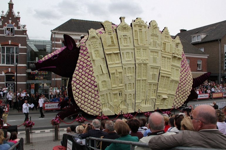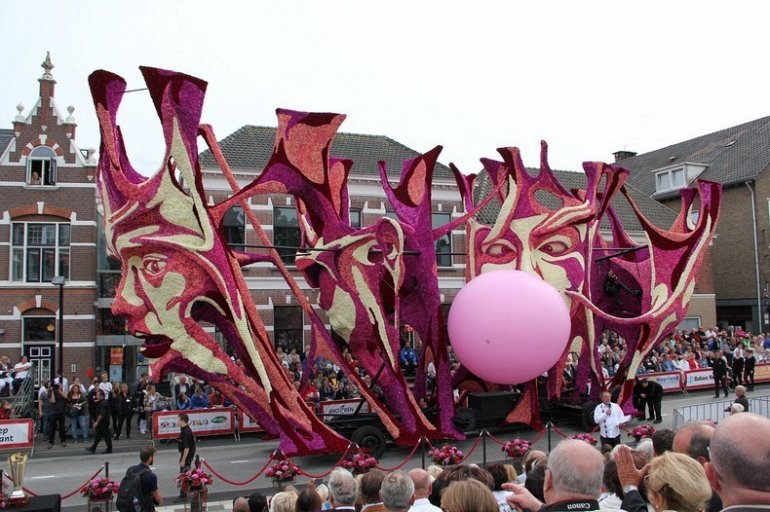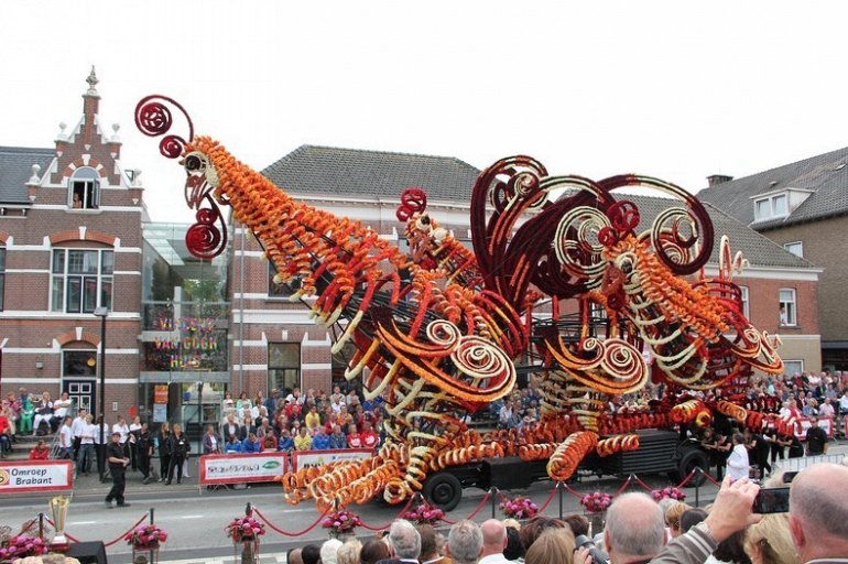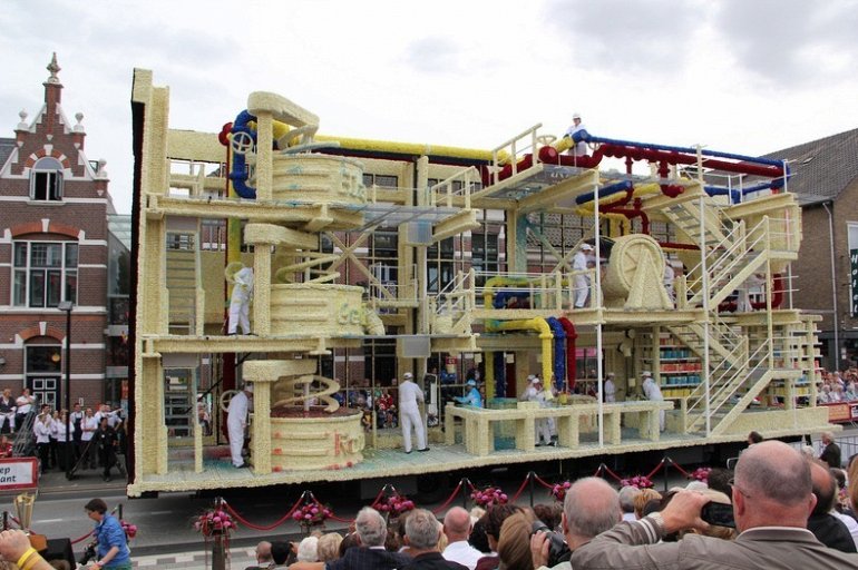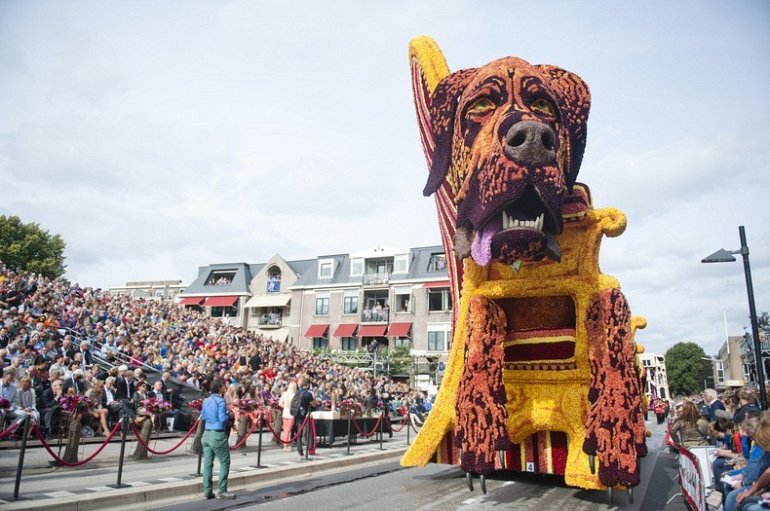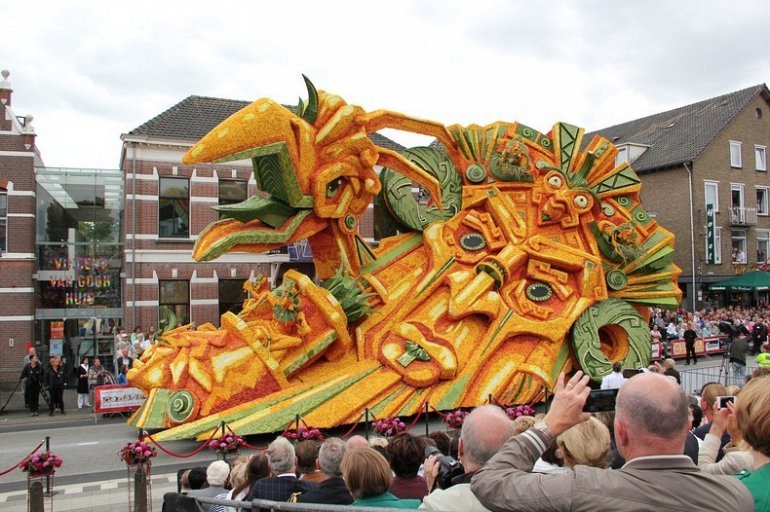 Блюменкорсо — самое большое событие года для небольшого города Зундерт, Нидерланды, и при этом крупнейший цветочный парад в мире. Люди с нетерпением ждут его в течение многих месяцев, и летом они проводят недели, готовясь к нему. Огромные платформы сделаны из проводов, картона и папье-маше и полностью покрыты георгинами в запутанных проектах. Георгины выращивают специально для парада и тысяч цветов требуются, только чтобы покрыть одну платформу. Платформы сделаны двадцатью различными деревнями, где каждый из команд состоит из сотен строителей возрастом от 1 до 100 лет, полностью посвятивших себя этому делу. Участники старшего возраста деревни часто ответственны за выращивание георгин, в то время как младшие строят подиумы в больших временных палатках, специально развернутых для этого случая. Мы уже писали об этом празднике в прошлом году, теперь расскажем Вам, как проходил Блюменкорсо 2013