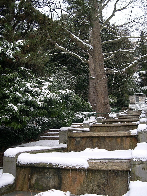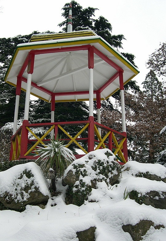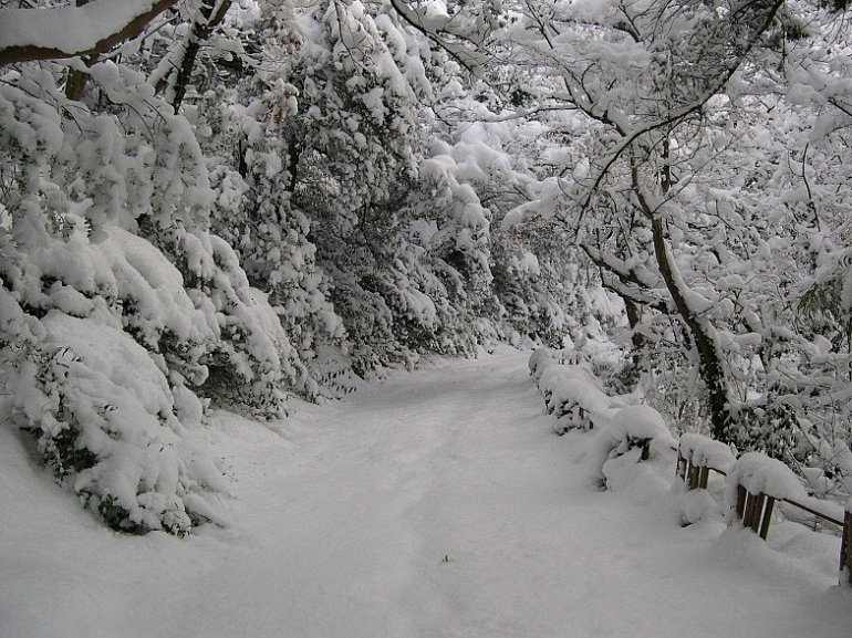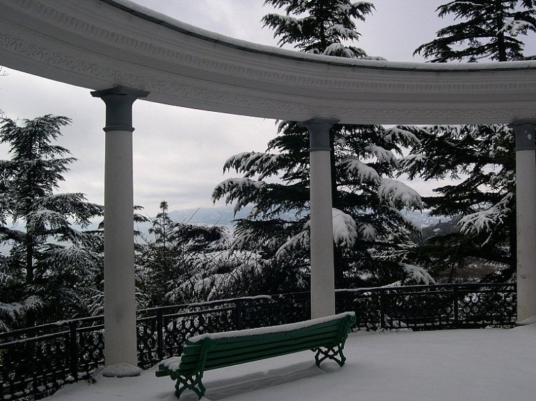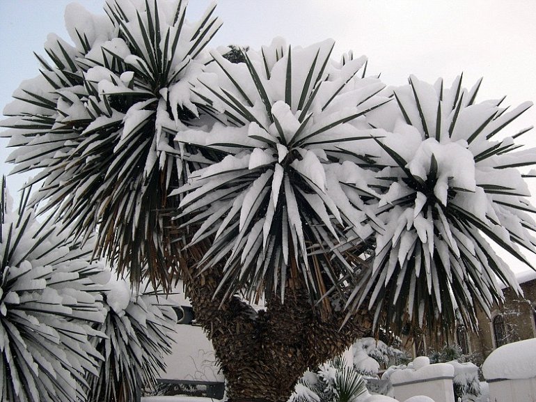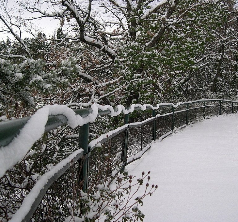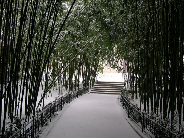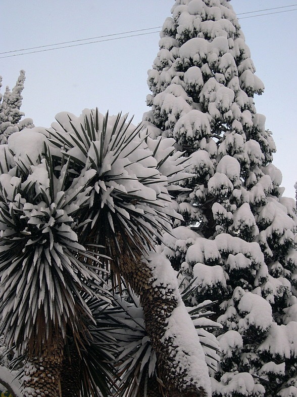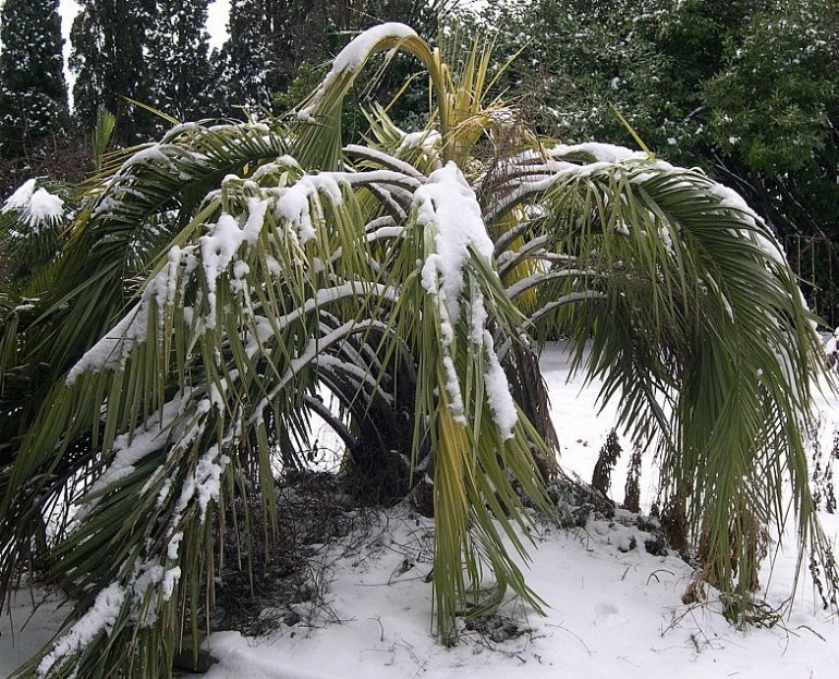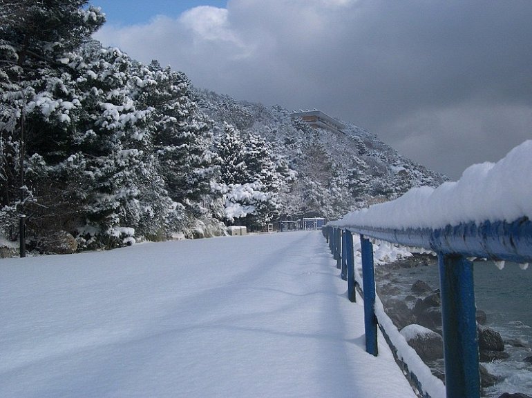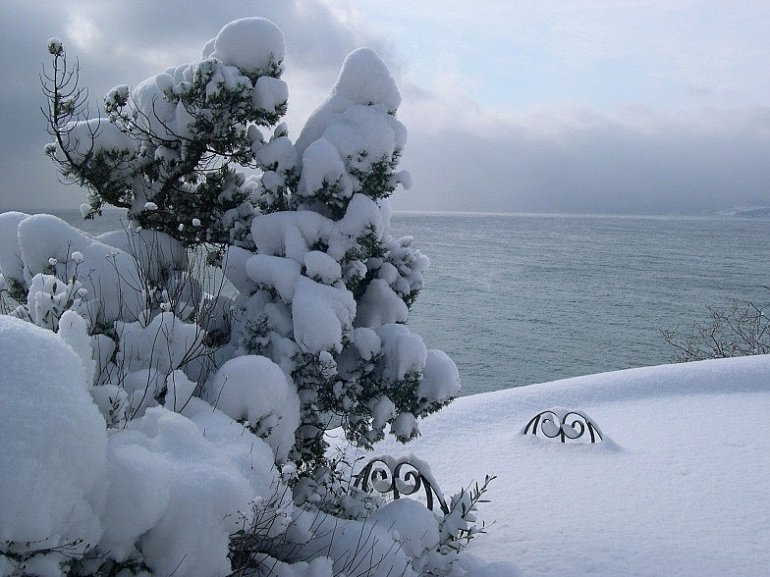 Знакомые аллеи и пейзажи Никитского ботанического сада кардинально преображаются, как только выпадает снег. Укутанные белоснежным покрывалом, они становятся похожими на декорации к какой-то зимней сказке: пальмы в снегу, выбеленные силуэты вечнозелёных гигантов, море с заснеженными пляжами и обледеневшими волнорезами… Например, так выглядят покрытые снегом парковые аллеи