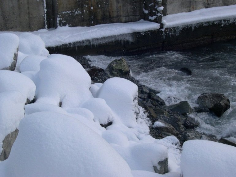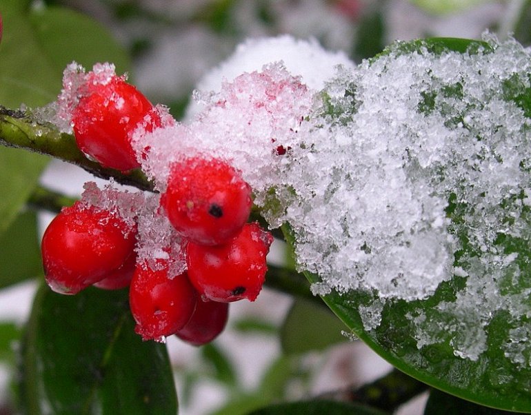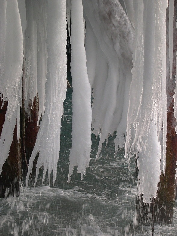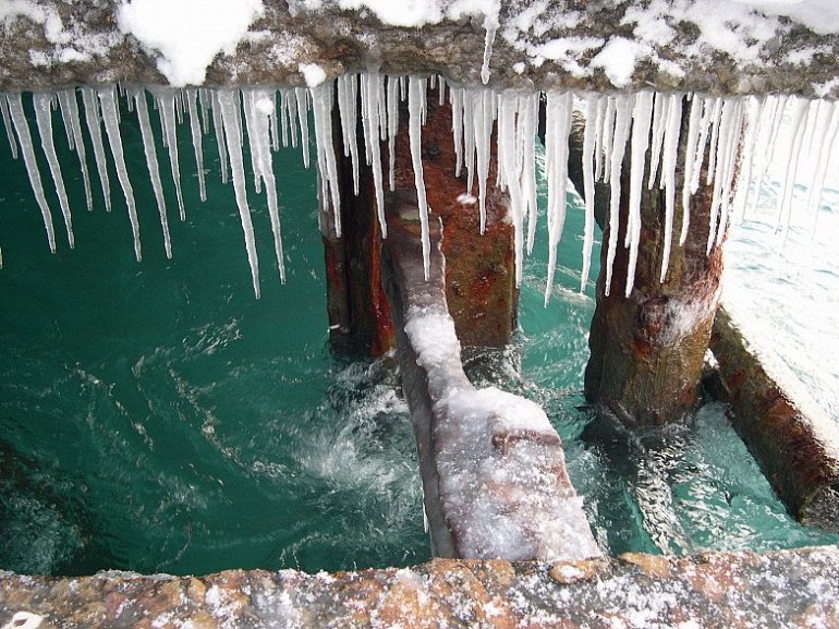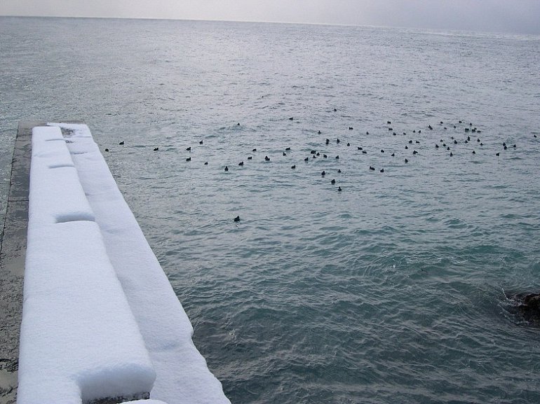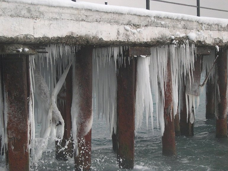 Море. Заснеженная набережная и обледеневшие волнорезыНемного цветов и ягод)