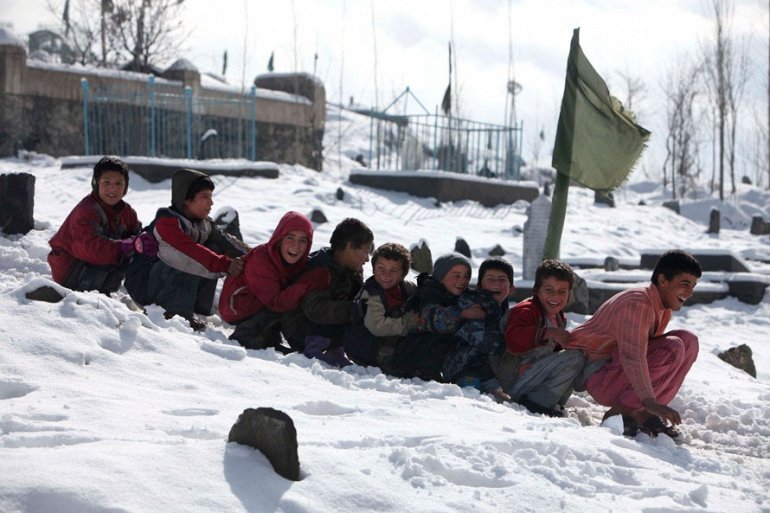 Афганские дети веселятся в снегу возле кладбища в Кабуле, Афганистан (AP Photo/Altaf Qadri)![]()