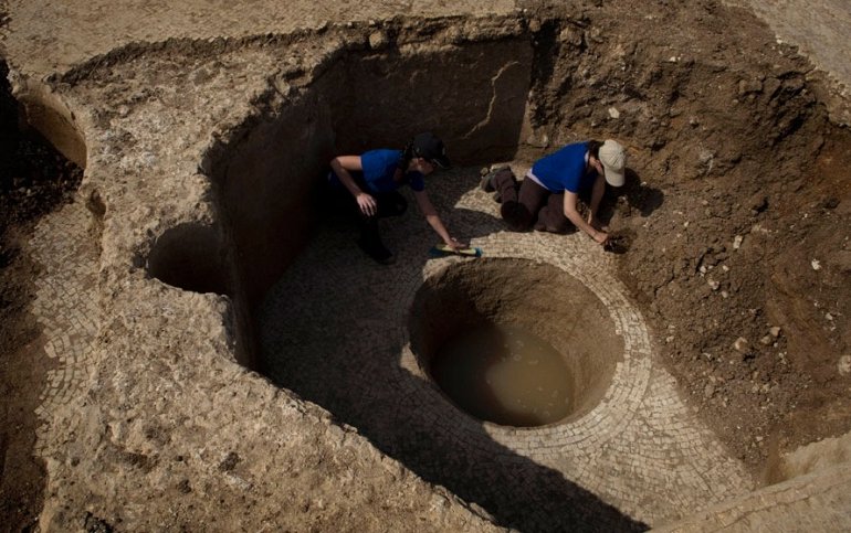Израильские археологи нашли винный пресс, которому уже 1400 лет. Пресс был найден в кибуце Hafetz Haim. Археологи были удивлены находкой, пресс необычно большой и продвинутый для своего возраста (AP Photo/Sebastian Scheiner)
