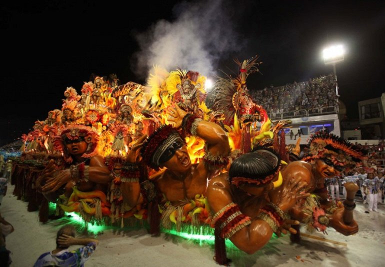 А вот площадка школы самбы Beija Flor во время представления на Самбадроме в Рио-де-Жанейро (AP Photo/Martin Mejia)