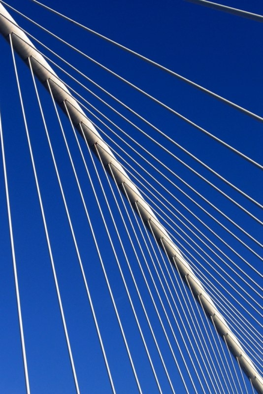 Мост поддерживается массивными кабелями, похожими на струны