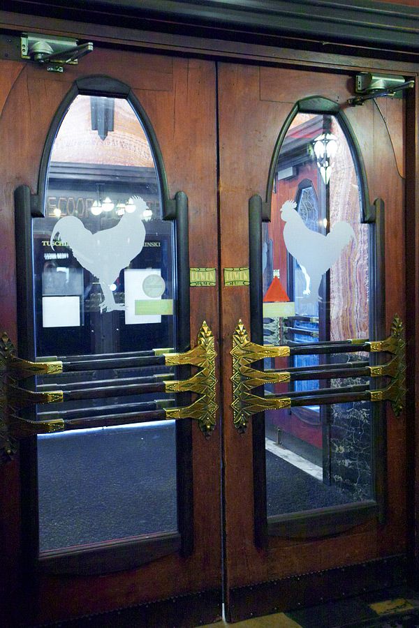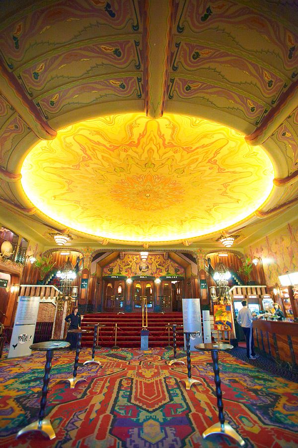 С недавних пор здание принадлежит известной сети Пате, потому к интерьеру добавился символ киностудии — петухи