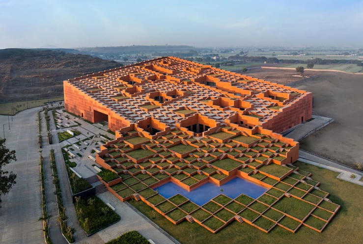 Проект был разработан известной индийской студией Sanjay Puri Architects. Университет состоит из пятиэтажного здания, в котором расположены аудитории, библиотека, офисы и столовая. Однако наибольшее внимание привлекает крыша, которая занимает площадь 92 фута и состоит из 463 ступенчатых платформ, каждая из которых может быть использована для социальных встреч и мероприятий.