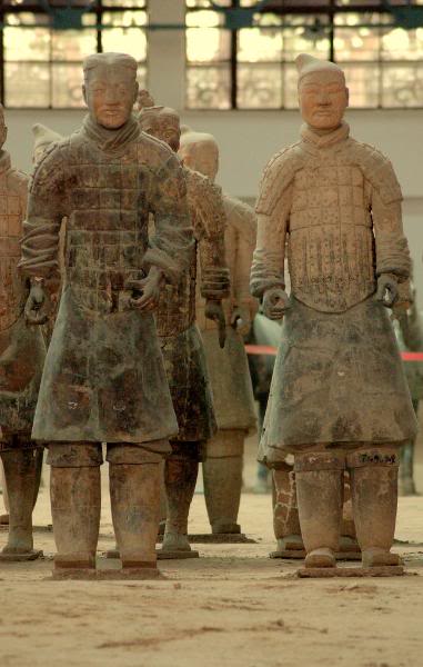 Легенда гласит. Что вместе с Шихуанди должны были быть заживо погребены его 4000 воинов для охраны покоя правителя, но такое действо могло повлечь за собой массовое недовольство народа, и император отошел от этой идеи. Живим воинам пришли на замену их глиняные копии, число которых было увеличено вдвое.