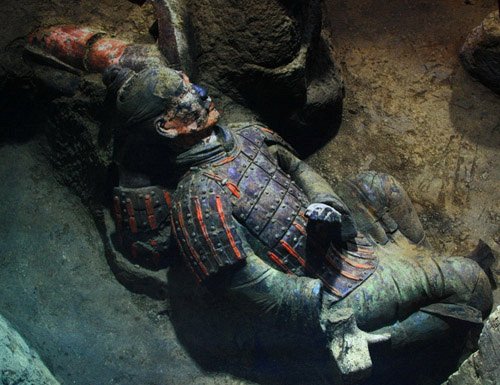 Все глиняные фигуры были очень ярко раскрашены, но до нас дошли уже не такие яркие, в силу того, что краски потускнели от контакта с кислородом, когда воинов начали извлекать на поверхность.