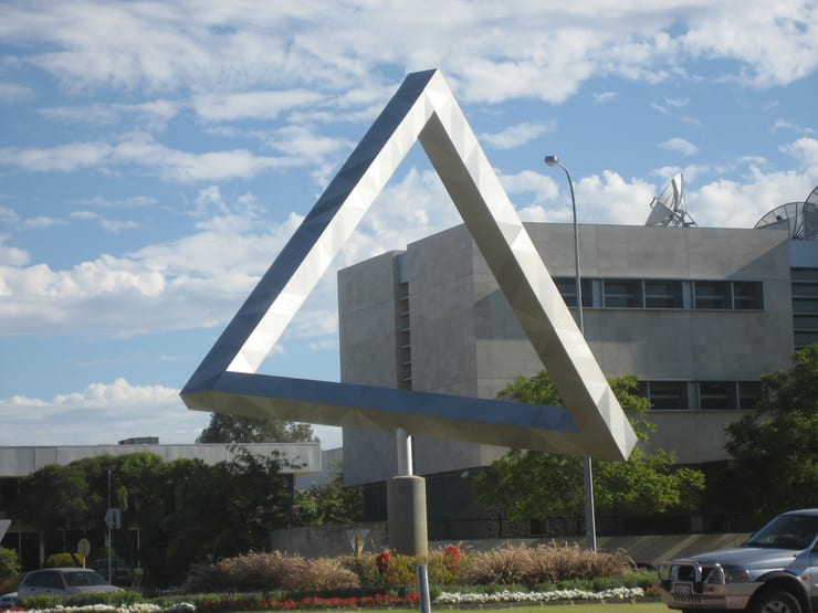 В 1999 году в австралийском городе Перт появилась тринадцатиметровая алюминиевая скульптура невозможного треугольника. С той единственной точки, с которой она снята на всех официальных фотографиях, она выглядит в точности как рисунок Пенроуза. Стоит сделать шаг в сторону — и видна настоящая конструкция: три разомкнутых бруска, которые только с одного угла кажутся замкнутыми.