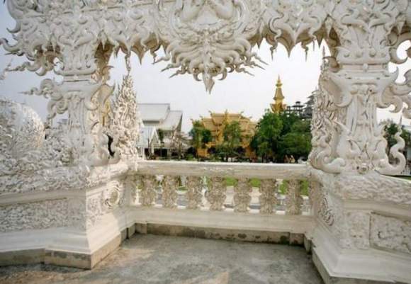 Белый храм уникален среди других храмов, потому что построен полностью в сияющем белом цвете со вспыхивающими зеркальными стеклянными мозаиками. Храм был идеей Chalermchai Kositpipat — одого из самых известных художников Таиланда, решившего построить храм в белом цвете, чтобы показать чистоту Будды. Строительство началось в 1997. В настоящее время Wat Rong Khun все еще строится.