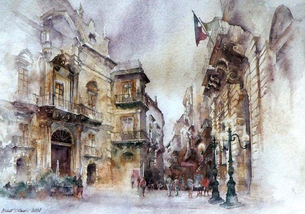Майкл Орловский (Michal Orlowski) – польский художник и архитектор, а также заядлый путешественник. Полотна художника написаны акварелью, и Майкл уверен: техника рисования акварелью – уникальна и многофункциональна, и никакая другая техника не сможет так передать спонтанные эффекты, эмоциональные элементы, легкость и свободу.