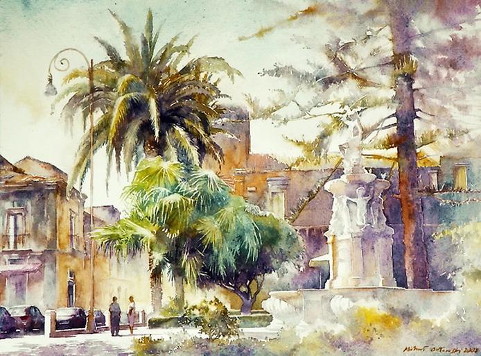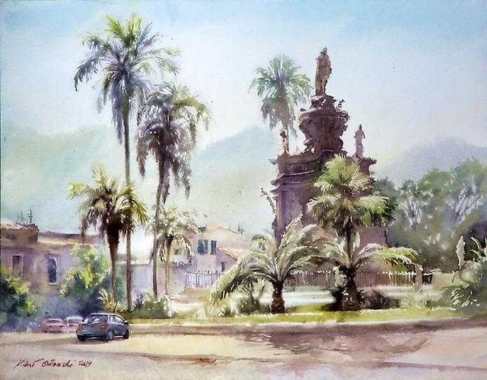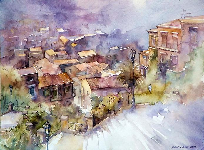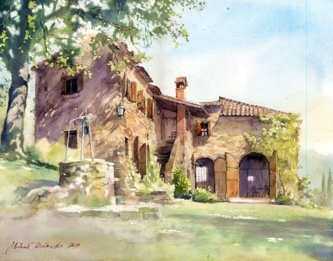 "Я большую часть своих поездок провожу за рисованием с помощью кисти, карандаша и блока бумаги, все эти предметы я всегда вожу с собой. Места которые я посетил, прожитые моменты, те ситуации которые прочувствовал — все это наложило свой отпечаток на меня, и я выливаю свои эмоции на бумаге. Часто желание слиться с местом хранящим местные запахи и ауру, его атмосферу бывает настолько сильным, что я пишу прямо под открытым небом. В других случаях, когда я как правило нахожусь у себя дома, какая-то часть меня очень тоскует по далекой земле и тогда фотографии и моя хорошая память помогают мне писать картины. Мимолетные эмоции отражены в самом тонком,деликатном и очень честном, иногда даже болезненно честном, искусстве — акварель. Любой, кто когда-либо рисовал акварелью знает, что ее упорство, ее капризы, но и ее спонтанность, свобода и легкость — делают этот вид живописи абсолютно уникальным."