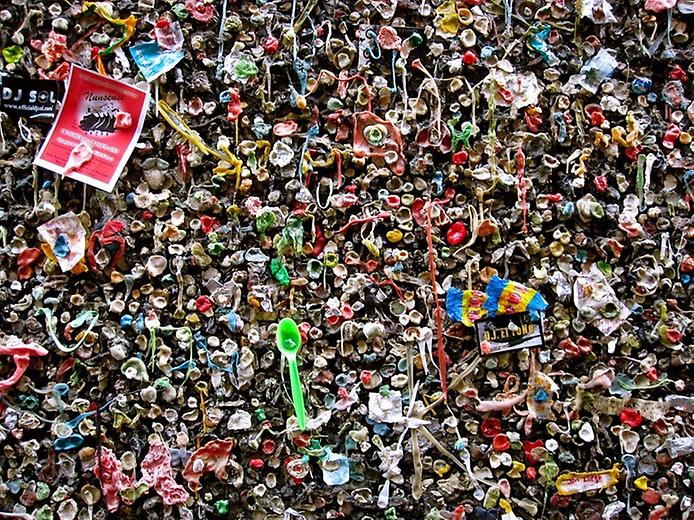На самом деле стена — это не просто скопление слипшейся жвачки. Но некоторые люди в городе считают её формой искусства. Здесь вылеплены интересные формы — цветы, лица, и даже признания в любви. Если всмотреться, можно обнаружить здесь и монеты, и иногда даже презервативы. В любом случае, здесь активно отмечают своё присутствие люди всех возрастов, каждый из которых оставляет собственный вклад в общее творчество