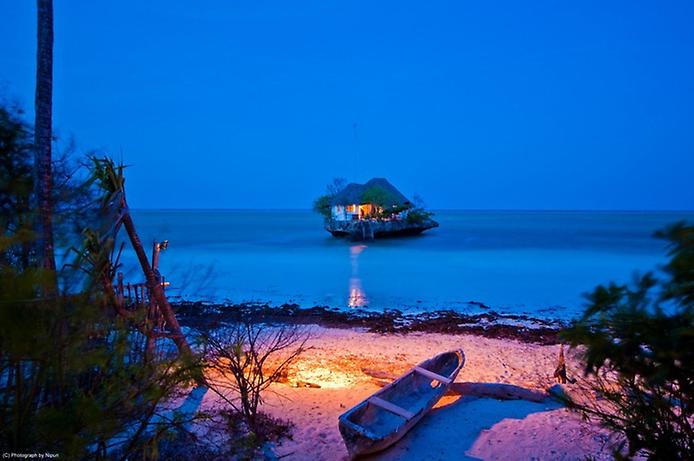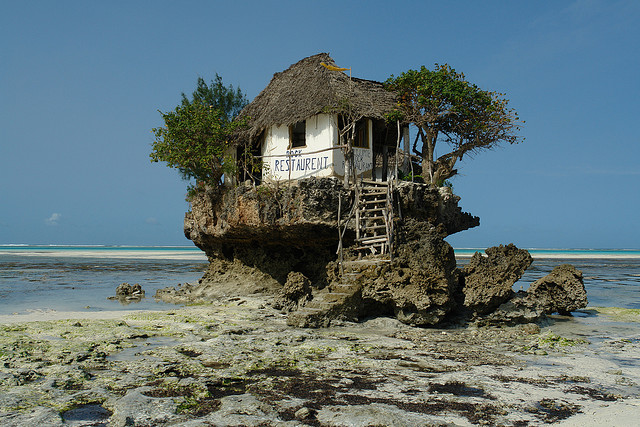 Ресторан на скале расположен посереди Индийского океана, недалеко от берега Занзибара, Танзании. Крошечный ресторан, где подают различные блюда из морепродуктов называется коротко и ясно — Rock