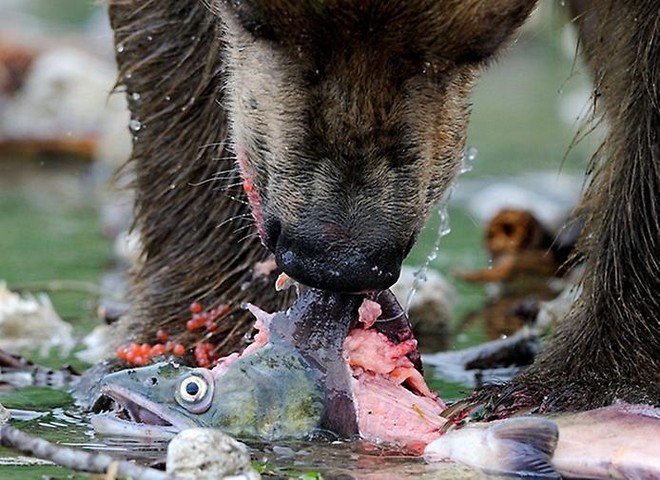 В течение того времени, когда рыба мечет икру, лучше всего приходится медведям, это сытая пора для них