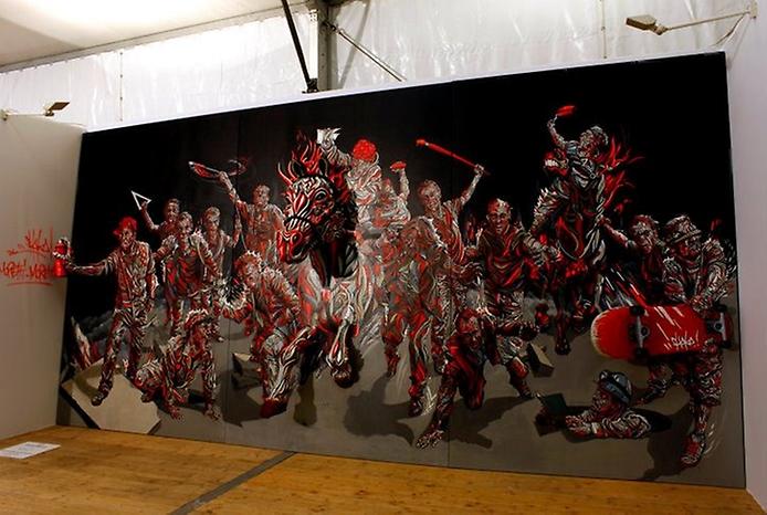 Маршал Митьюарт начал как граффитист, работа которого постепенно развилась от основного до уникального вида трехмерного уличного искусства. Он использует реализм, в основном на его картинах изображены толпы людей, которых объединяет одна цель!