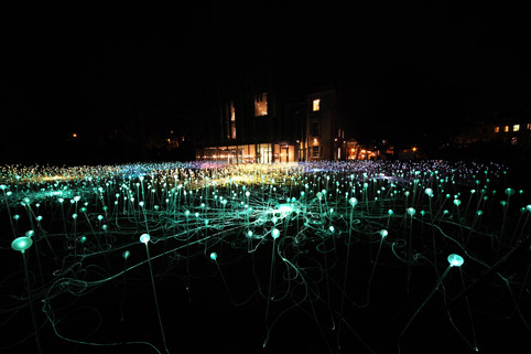 Огни, растущие из земли напоминают больше звезды, и кажется, что они просто упали с небес. Вся площадь, которую смогут охватить глаза усыпана пламенем света, которое, будто дразнит окружающую его темноту. Волшебство наступает тогда, когда мечты воплощаются в реальность. Увидев необыкновенные установки Брюса Манро, первое что придет вам на ум- это волшебство. Давайте совершим путешествие в волшебство, которое создает Брюс Манро