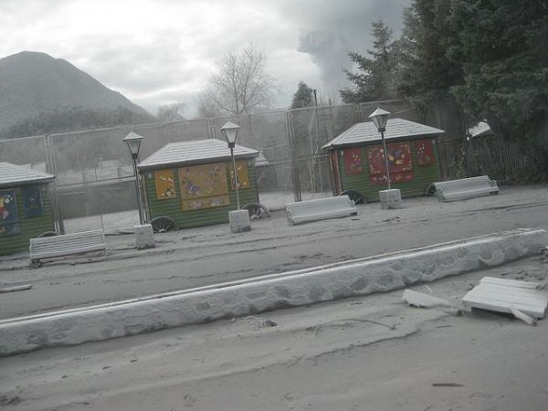 К 12 маю 2008 лахары, вызванные извержением, начали затоплять город, со временем способствуя полному затоплению и принеся не малый вред . здания и автомобили были погружены в метровые глубины пыли игрязи.