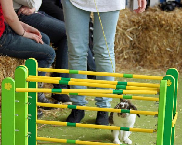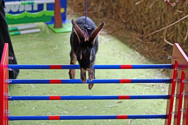 Кролики известны тем. Что могут достаточно хорошо прыгать. Все что нужно обладателю кролика — научить своего питомца прыгать через барьеры, путем плодотворных тренировок.
