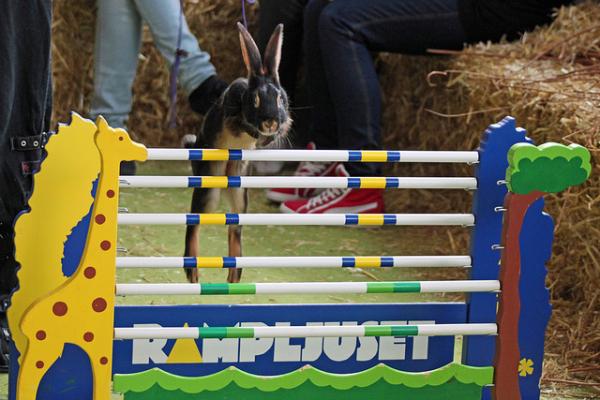 Все мы ассоциируем скачки с десятками красивых лошадей, ловко преодолевающих высокие барьеры. Но можно ли подумать, что скачки проводятся и среди кроликов? Соревнования по прыжкам среди кроликов в последнее время приобретают массовую популярность. Не верите? Тогда ознакомьтесь с этими фотографиями маленьких кроликов-атлетов, участвующих в лондонском Шоу домашних животных 2011.