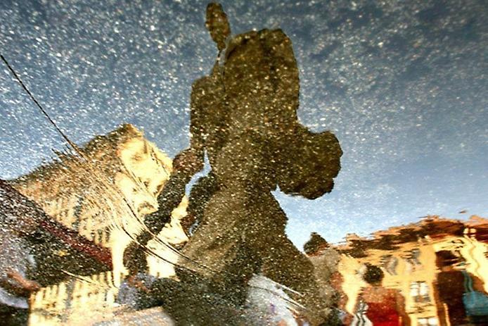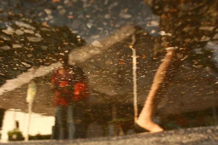 Серия фотографий под названием Размышления от фотографа Айры Фокс довольно необычна. Он доносит до зрителей свои идеи и различные сюжеты сквозь брызги воды в лужах на улице. Он использует лужи в качестве зеркала, чтобы запечатлеть городскую жизнь в дождливый день