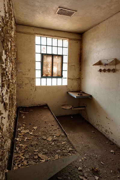 Оставленное и распадающееся военное место заключения на форте Ord, тюрьма в Монтерее, Калифорния. Место, где 14 групп заключенных объявили протест условиям жизни и несправедливому обращению. В 1968 они избежали каторжных работ и обвинений в мятеже после мирной демонстрации. Камеры в форте чрезвычайно узкие. Как видно на фото, в камере взрослый человек едва становится в полный рост. Множество заключенных были дезертирами войны во Вьетнаме, и люди, отказавшиеся от военной службы
