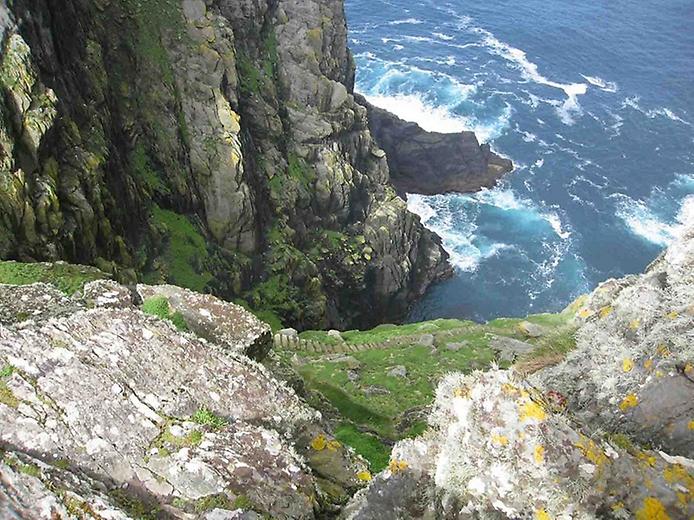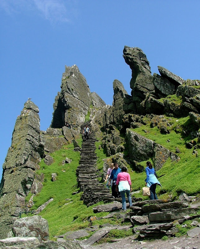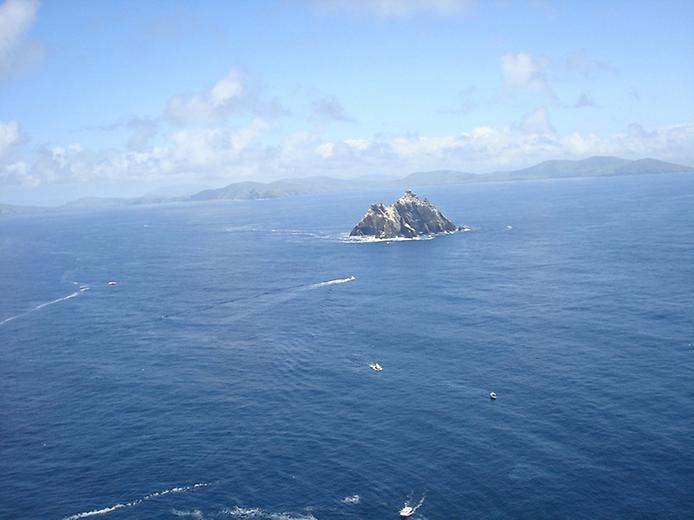 В переводе с ирландского языка Скеллиг Майкл означает — скала Майкла. Великий скеллиг — это крутой скалистый остров в Атлантическом океане, в 12 километрах от берега юго-западной Ирландии. В самой высокой точке острова, на высоте в 230 метров, находится древний монастырь, основанный в 7 столетии. В течение 600 лет остров был центром отшельнической жизни для ирландских христианских монахов. Они жили здесь в каменных кельях, взгроможденных вдоль вертикальных стен утеса, в отрешении от внешнего мира. Единственной проблемой были викинги, время от времени совершавшие набеги на монастырь