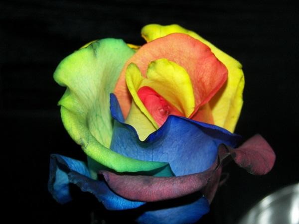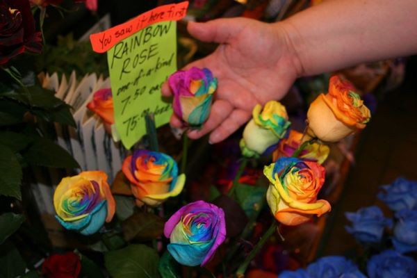В 2004 две голландских компании, «Речные Цветы» и «Ф.Дж. Зэндберджен» экспериментировали и успешно вырастили розу, которая окрашена в несколько цветов. Более того, вся комбинация лепестков выстроена в радужной последовательности и напоминает радугу