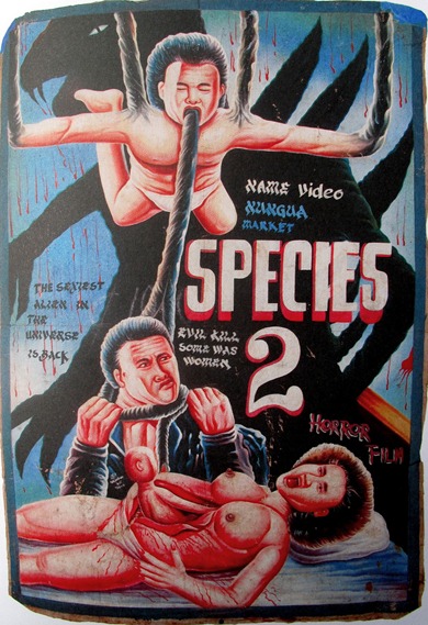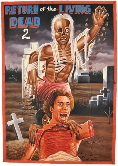 Когда первые видеомагнитофоны попали в Гану, примерно в 1980 годах, предприимчивые ганцы стали устраивать многочисленные подпольные кинотеатры. Зачастую это были мобильные, перемещающиеся с места на место фургончики, курсирующие по стране и собиравшие толпы желающих посмотреть на чудеса зарубежного кинематографа. Все что было необходимо для такого кинотеатра, несколько лавочек, стена для проектора, ну и конечно же, яркий красочный постер, чтобы заинтересовать зрителя. В желающих посмотреть кино и так отбоя не было, но благодаря особому подходу художников, рисующих киноплакаты, собирались целые толпы людей. В этой подборке Вы полюбуетесь самыми выдающимися образцами народного творчества ганских мастеров