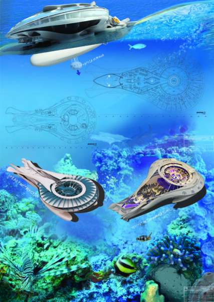 Польский студент-архитектор Филип Куцевски создал этот проект под названием "Three Spirits" для своей магистерской диссертации в Варшавском технологическом университете. Достаточно бросить один единственный взгляд на эти проекты, и становится понятной их футуристическая направленность. Гладко изгибающиеся формы этих отелей походят на космические корабли, плавно приземлившиеся на океанские волны