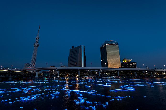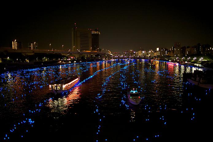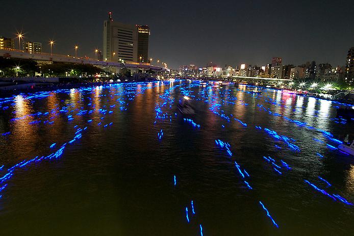 По замыслу авторов эти LED фонарики должны напоминать светлячков, мягко проплывающих по течению реки. По берегам на набережной всегда собирается огромное количество зрителей, ведь согласно историческим свидетельствам, когда-то река Сумида была родиной миллионов светлячков