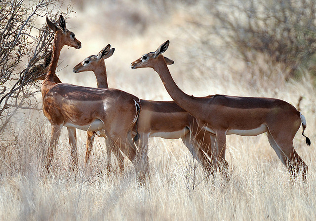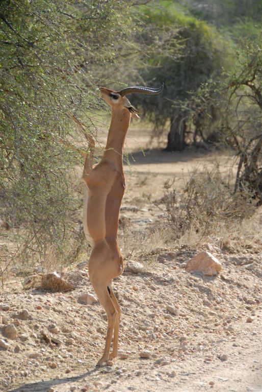 Большие глаза, уши, и тонкая шея — это все напоминает вымысел студии Disney, а не творение дикой природы степей Восточной Африки. Секрет сохранившегося в живых столь уникального животного возможно заключается в том, что оно имеет длинную шею. Чтобы понять взаимосвязь между выживанием и длинной шеей, достаточно обратить внимание на то, как трудно добыть пищу, которая растет высоко на ветках.