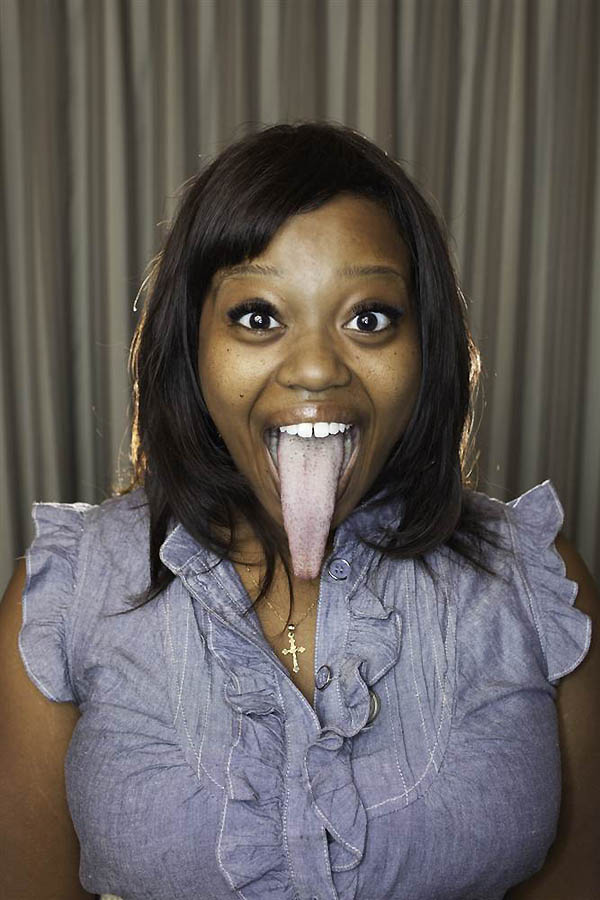 Самый длинный язык принадлежит британцу Стивену Тейлору длина языка-9.8 см. На фото изображена Шанель Тэппер, с языком 9.6.см