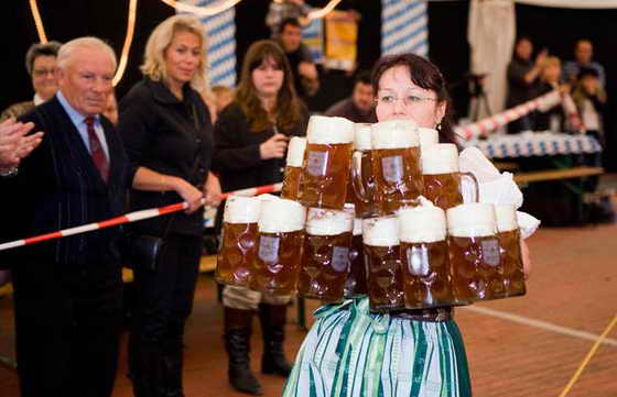 Жительница Германии, Анита Шварц, попала в книгу рекордов, благодаря тому, что смогла пронести самое большое количество пивных бокалов-19 штук.