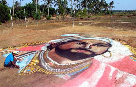 Нилеш Раджарам Наик из Индии, нарисовал самый большой рисунок на песке – 4.900 квадратных метров.
