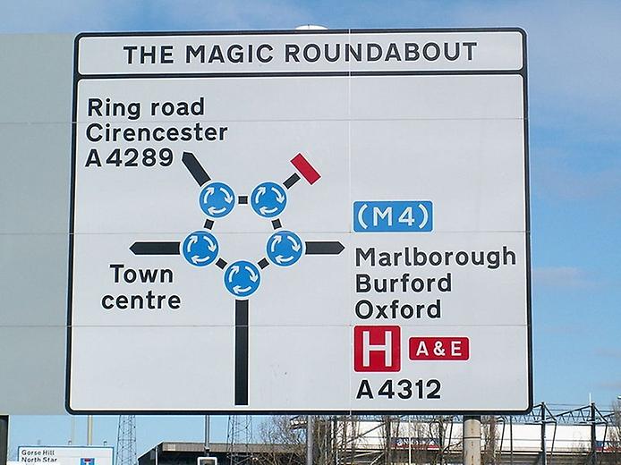 Волшебное кольцо в Суиндоне наверняка является самой необычной кольцевой транспортной развязкой из всех, что Вам приходилось встречать. Это странное кольцо было построено в 1972 году, кольцо состоит из 5 таких же мини-колец с особой разметкой на каждом из них. С первого раза довольно сложно разобраться, как же правильно передвигаться по такому кольцу, но местные жители без проблем справляются со здешним трафиком