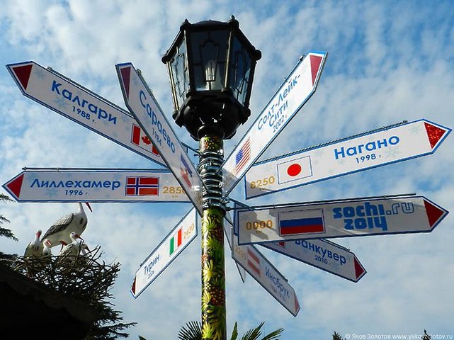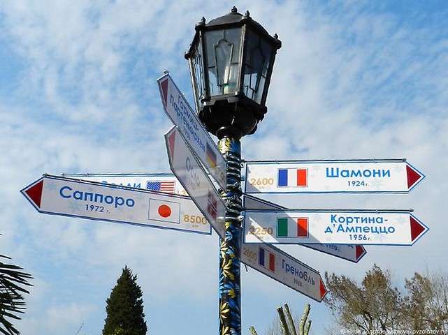 Сочинский нулевой километр – указатель километража от курортного центра, до столиц зимних олимпиад.