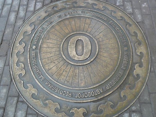 Нулевой километр в Уфе, столице республики Башкортостан, был установлен в 12.00 14 сентября 2007 г. Расположен он около главной почты на улице Ленина. Бронзовый монумент имеет вес 700 кг, и представляет собой диск в 1.5 метра.